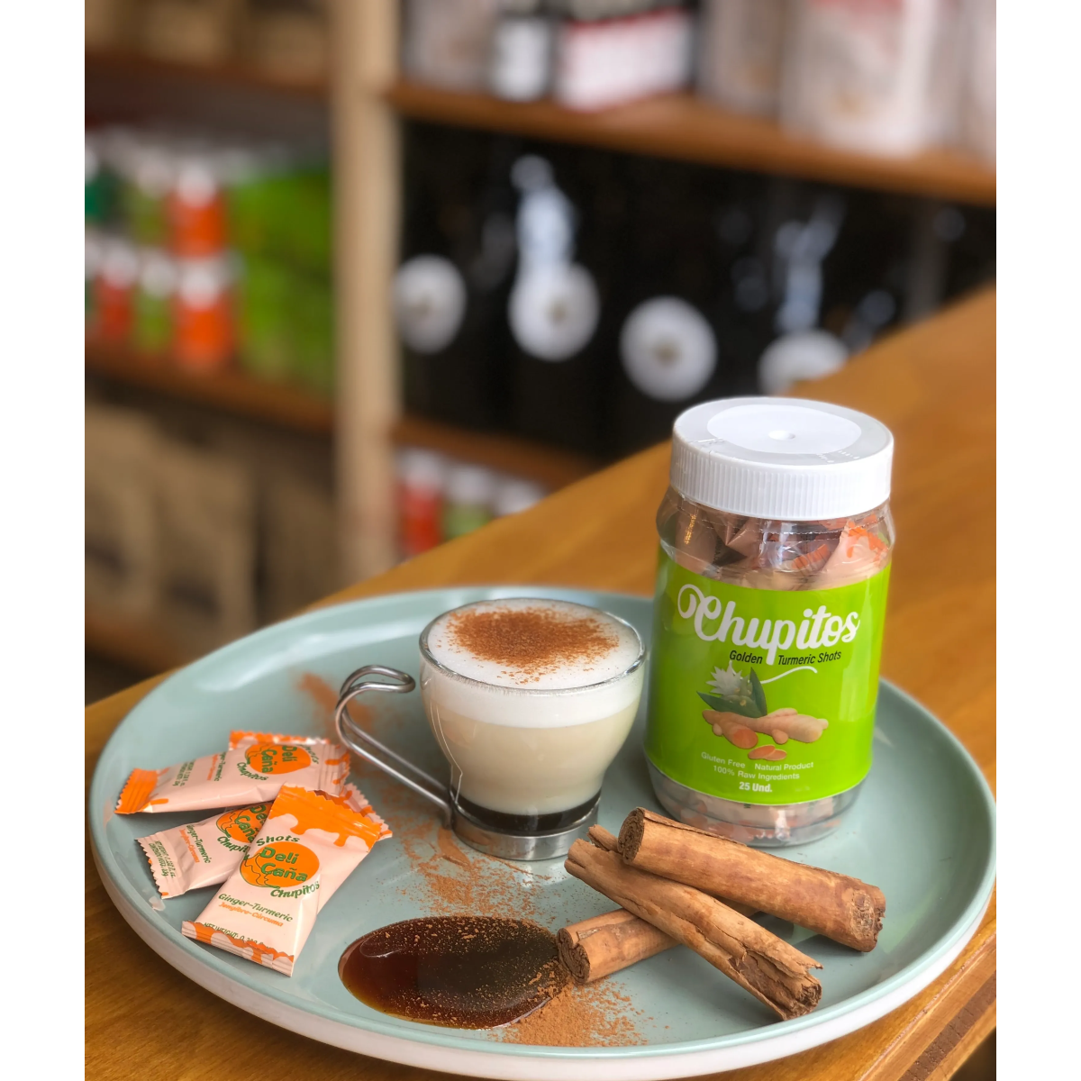 Sumérgete en una experiencia de bienestar única con nuestro Chupito de Miel de Caña Natural con Cúrcuma Dorada, una mezcla exquisita que fusiona el dulzor natural de la miel de caña con harina de cúrcuma liofilizada, semillas de chía molidas y pimienta negra. Presentado en un sobre de 10g, este elixir no es solo una bebida, sino una invitación a un viaje de sabor y nutrición equilibrados.
