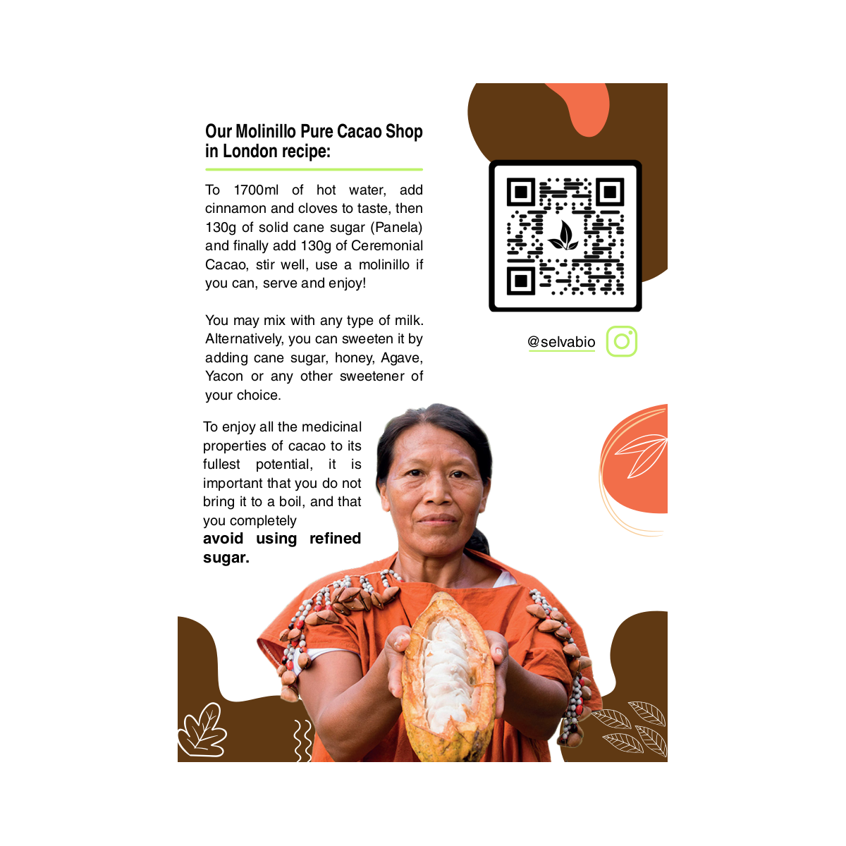 Cacao ceremonial producido de forma orgánica por la Tribu Ashaninka en Perú.
