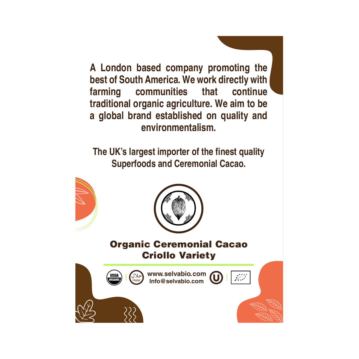 El Cacao Ceremonial es la forma más orgánica y pura de chocolate crudo disponible. Importado directamente de la Amazonía peruana y producido por la tribu Ashaninka, este cacao mantiene antiguas tradiciones orgánicas que han sido cuidadosamente conservadas a través de las generaciones.